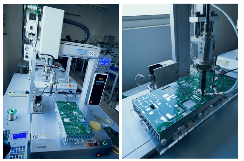 準備好焊接的樣品,固定不動在自動焊錫機的作業平臺上。