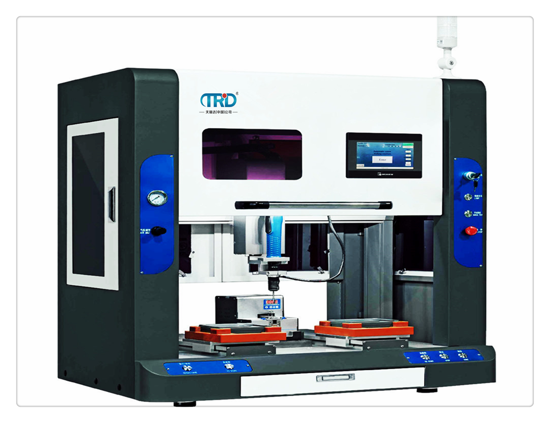 TS-4321L雙平臺桌面螺絲機可對各種工件進行自動鎖螺絲作業。采用真空吸螺絲方式,靈活性強,通用性好。克服了風吹螺絲不能送長徑比小1.2的特點,也克服了磁性吸螺絲方式不銹鋼螺絲不能吸的特點。自動螺絲機操作簡單,生產效率高、送螺絲可靠性高,初學者也能達到熟練工人的打螺絲效果。本機采用簡易快速地輸入鎖附程序,其軟件具有智能檢測功能,可檢測漏鎖、浮鎖、滑牙等。