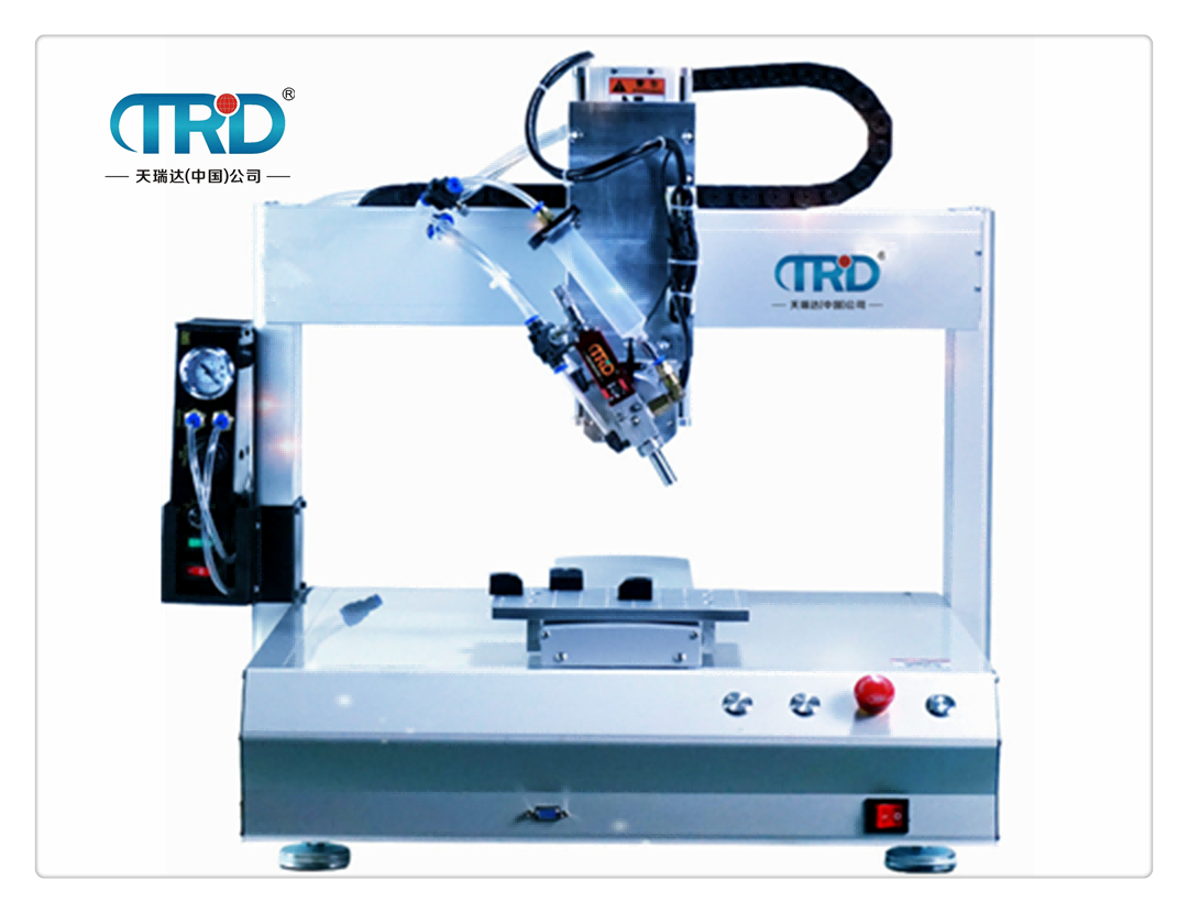 產品介紹TA-4410F精密自動點膠機可對各種工件進行自動點膠作業。解決了人工重復性點膠動作出現的點膠不均勻等現象。并可以提升效率,節省人力??商娲斯ぬ囟ǖ狞c膠作業,實現機械化生產。自動點膠機操作簡單,生產效率高、點膠質量好、環保又節能、初學者也能達到熟練工人的點膠效果。本機采用簡易快速地輸入點膠程序,其軟件并具有強大的編輯功能,可輕易、快速的完成程序教導。